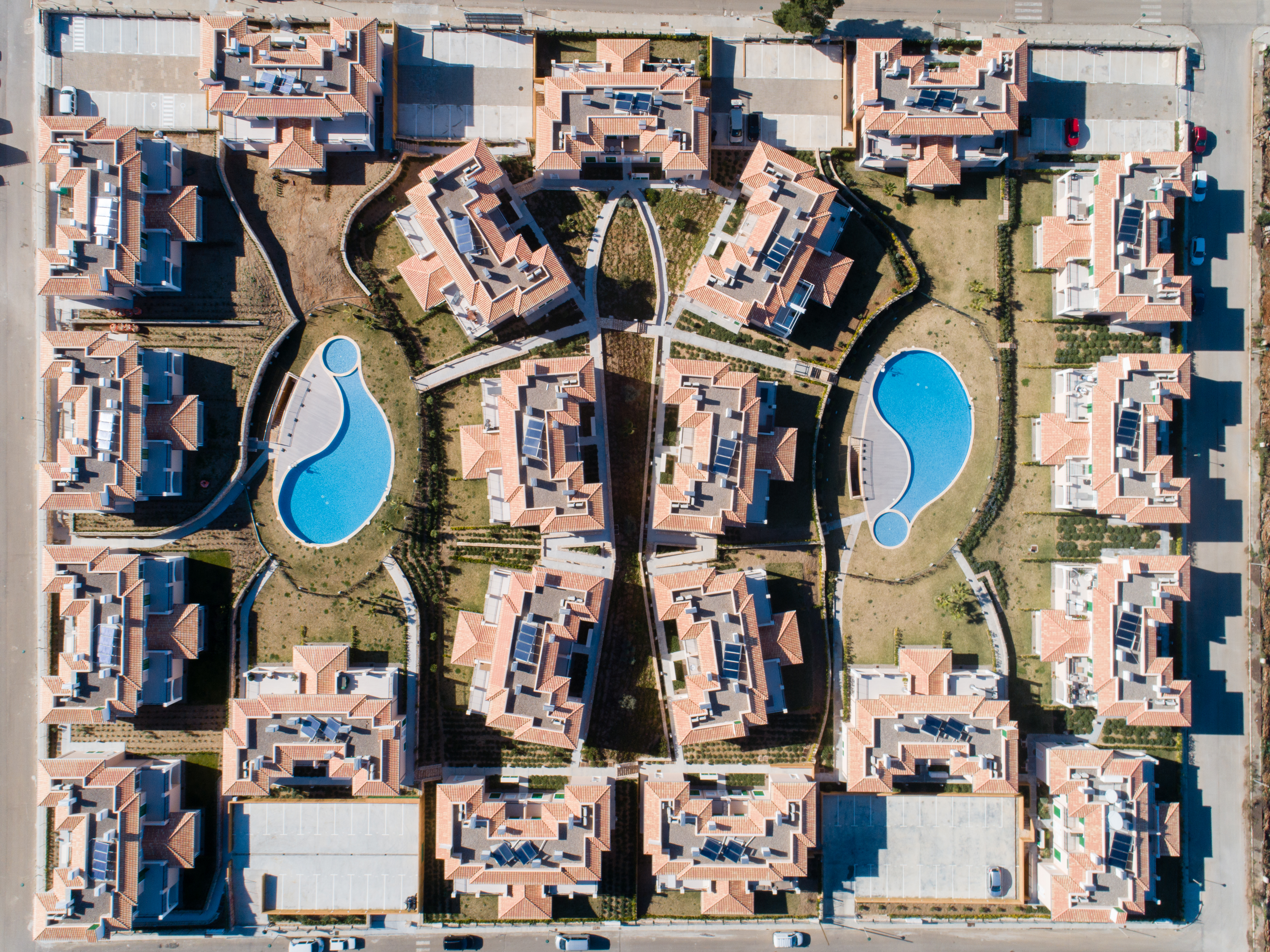 Conjunto de 21 bloques de viviendas plurifamiliares para un total de 105 viviendas, piscina y aparcamiento.