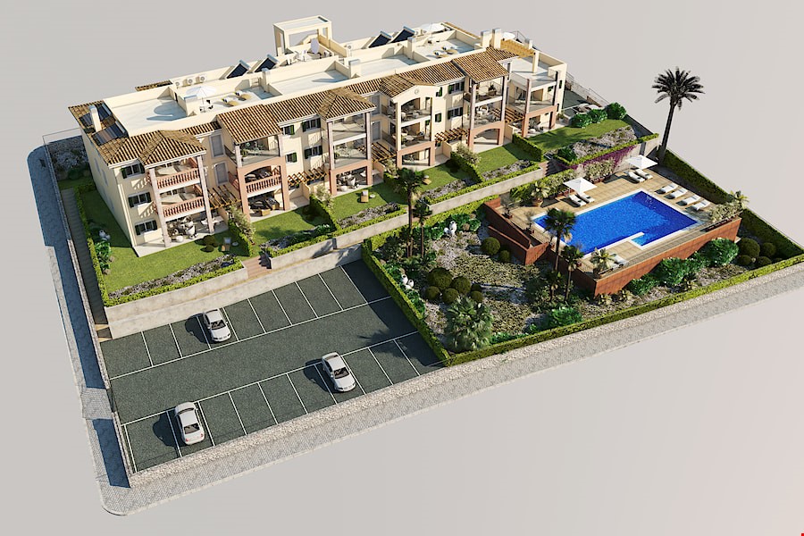 Edificio de 17 viviendas, aparcamientos y piscina